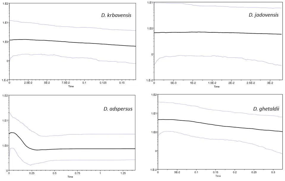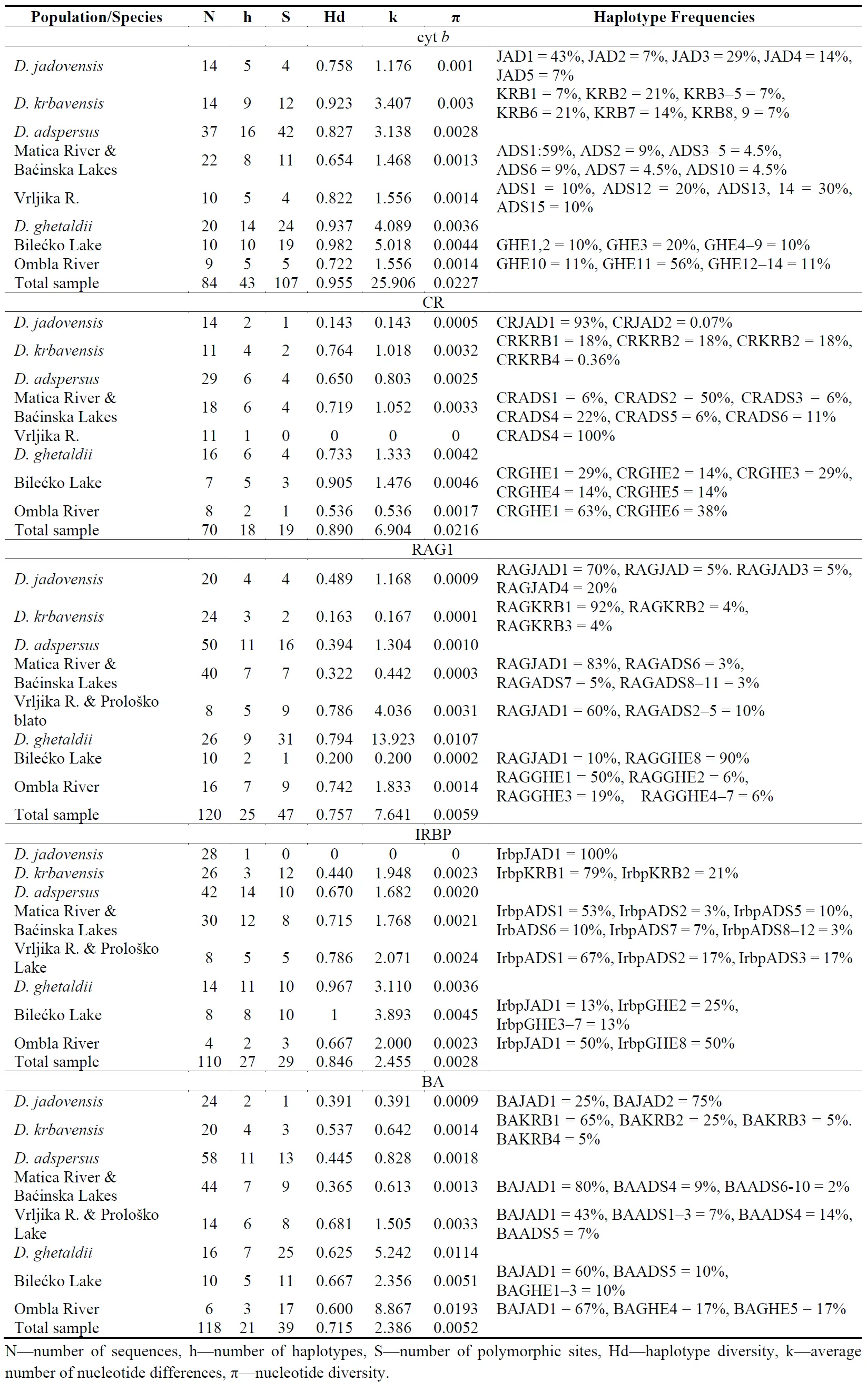 D. krbavensis. The two latter species are located in an area that was affected by glaciations led to bottleneck effects in previously investigated freshwater fishes [