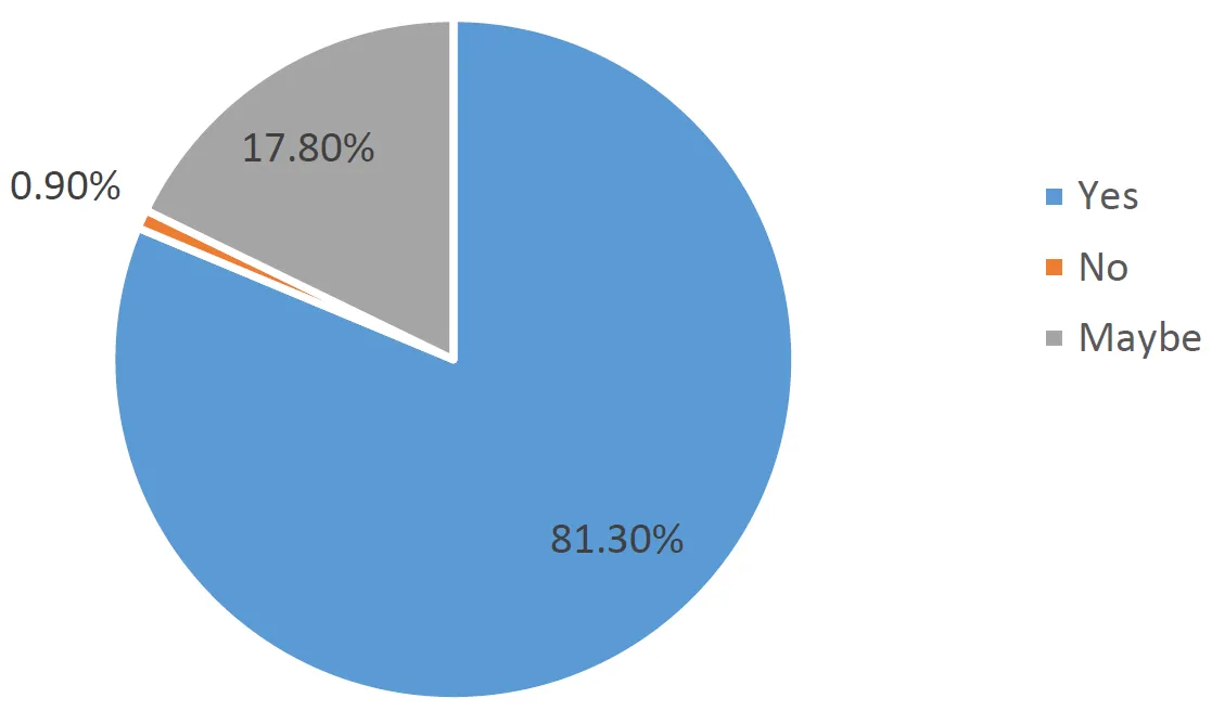4]. Conversely, a very small proportion, just 0.9%, indicated their non-support for the practice of synthetic biology. This minimal opposition could be attributed to concerns about ethical implications, potential risks, or a lack of understanding of the field. The extremely low percentage of opposition highlights that resistance to synthetic biology is not a significant barrier among the public [