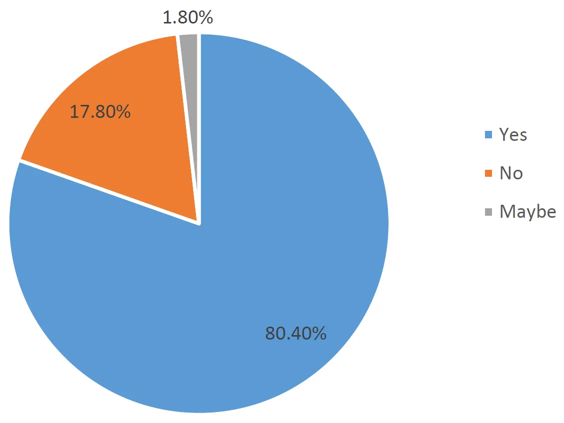 The survey results provided a clear view of participants’ perspectives on the regulation of synthetic biology in Nigeria. A significant majority, 80.4% of respondents, agreed that synthetic biology should be regulated, reflecting a strong consensus on the importance of oversight and control in the field (See ). In contrast, 17.8% expressed uncertainty about the need for regulation, indicating some ambivalence or lack of information regarding regulatory measures. Only 1.8% of participants believed there should be no regulation, suggesting minimal support for an unregulated approach to synthetic biology, as noted by [
