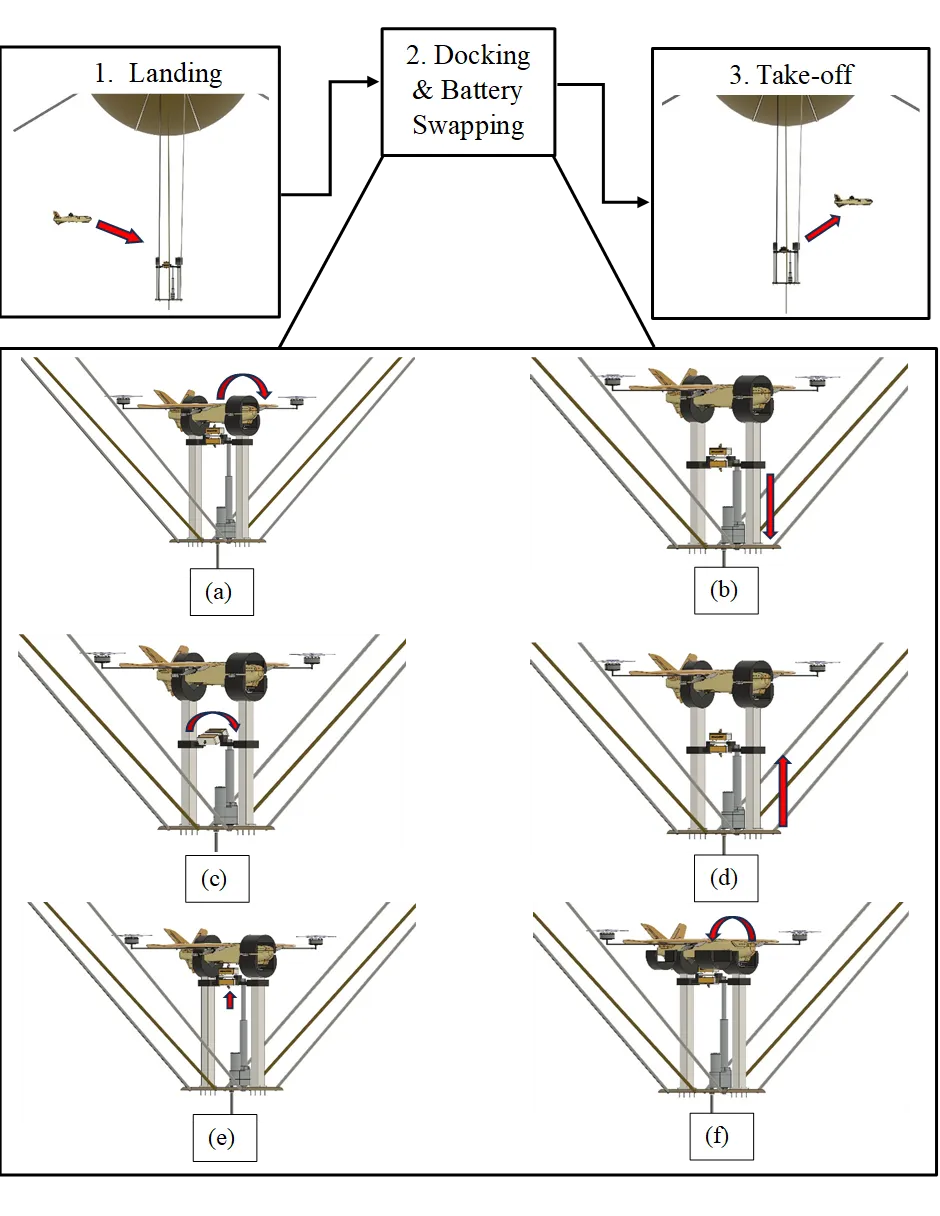 A particularly noteworthy solution involved an inverted docking station concept, allowing a quadrotor UAV to attach to the ceiling during battery swapping. This design not only allowed the UAV to remain airborne during the process but also enabled it to carry a payload throughout, thus improving overall operational efficiency [