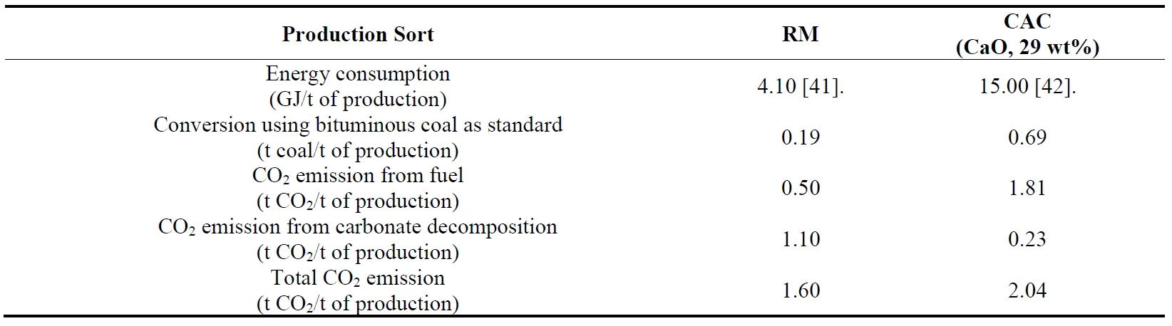 2 was generated to prepare 1 ton of RM compared with that of 1 ton of CAC.