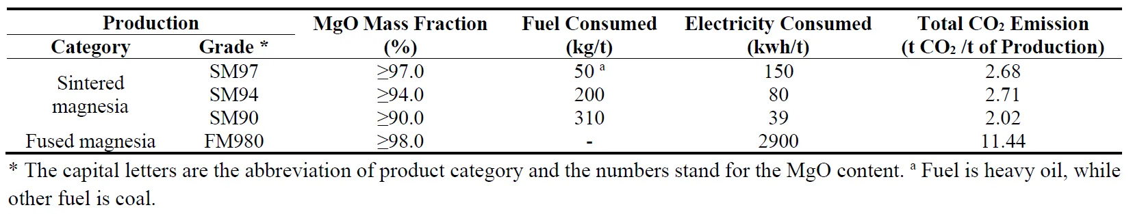 . Energy consumptions and CO2 emissions generate for the production of sintered magnesia and fused magnesia.