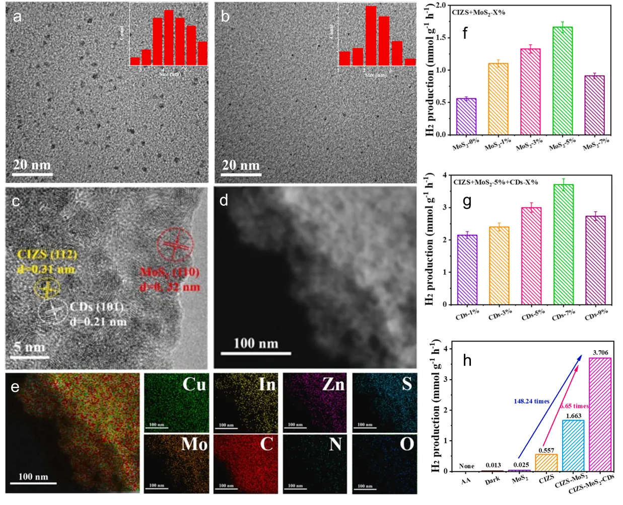 58]. The photocatalytic hydrogen production performance of all CZIS nanostructures depends on the molar ratio of ZS:CIS.