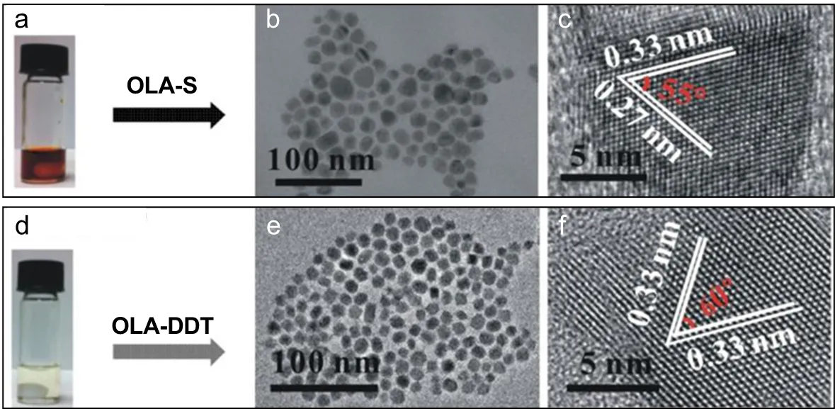 63]. As shown in a, the obtained monodisperse CZTS nanocrystals exhibit a quasi-spherical shape with minimal size dispersion (below 10%). This can be attributed to the efficient mixing and heat transfer within the reaction solution and precise control of heating ramp stability achieved through intensive argon bubbling. The HRTEM image and the fast Fourier transform (FFT) pattern show that the CZTS nanocrystals have a WZ phase (b). Ryan and coauthors have successfully prepared 1D WZ stoichiometric CZTS nanorods using 1-dodecanethiol (1-DDT) and tert-dodecyl mercaptan (t-DDT) as sulfur sources [