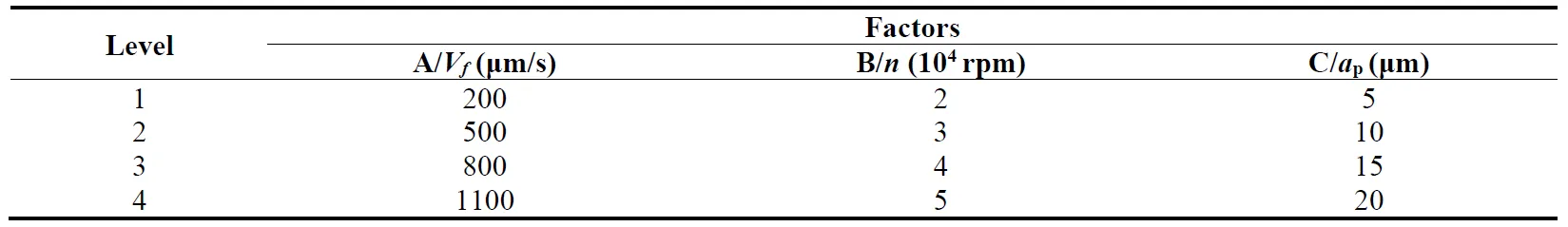 ap = 5 μm were selected for the subsequent micro-milling experiment under different working conditions.