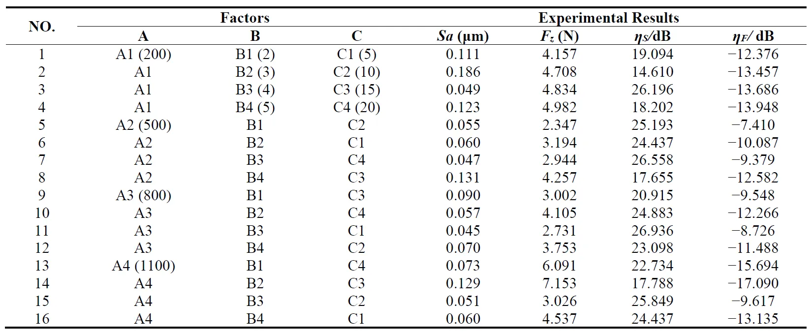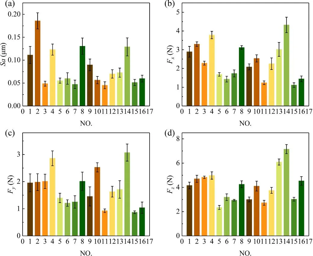Sa and cutting forces along all directions under each experiment were measured. Among the