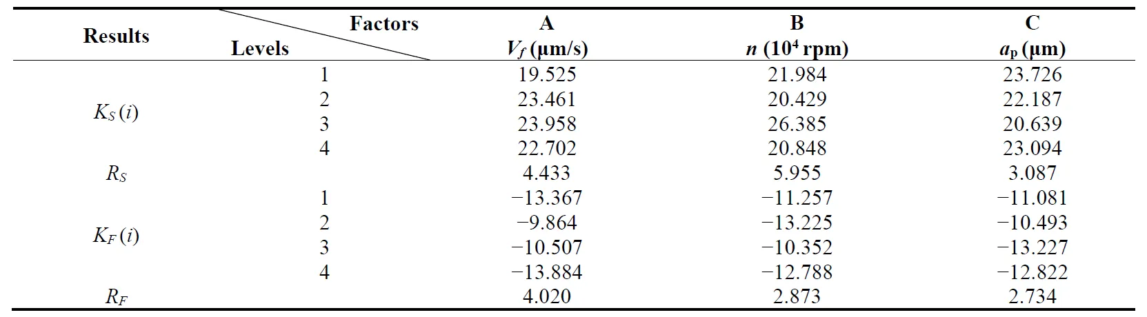 Fz were used as comprehensive measurement indicators for data analysis of orthogonal experiment. The signal noise ratio (SNR) was utilized to characterize the measurement indicators, where $$\eta_S(n)$$ and $$\eta_F(n)$$ represented the SNR of