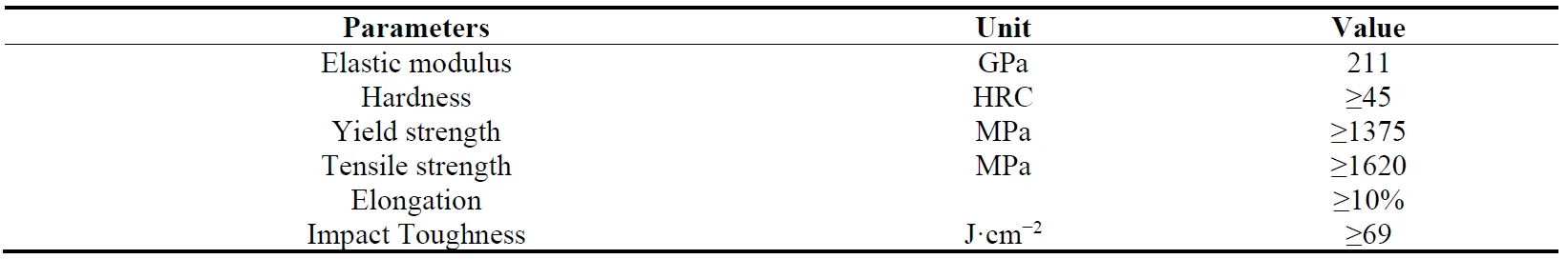 The material used in the test was 30CrMnSiNi2A high-strength steel bar, and the test sample with a size of Φ45 mm × 3 mm was obtained by cutting. The chemical composition and physical performance parameters of the material are shown in and .