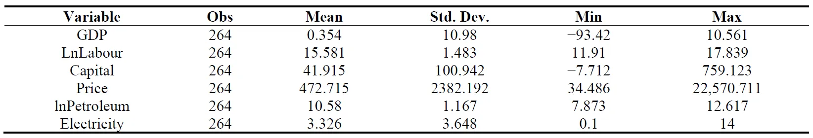 51]. The study utilizes the yearly percentage increase in per capita Gross Domestic Product (GDP) as the dependent variable, which is a standard measure of economic growth. Electricity and petroleum were selected as key independent variables based on their fundamental role in driving economic activities within the Eastern African context. These two energy sources are critical in sectors such as manufacturing, transportation, and services, which are heavily depend on these energy for the region’s economic growth [