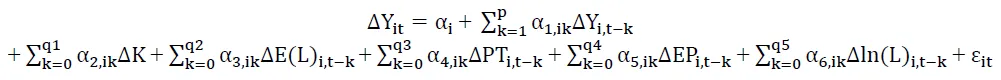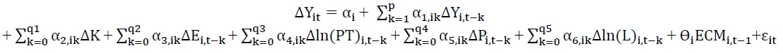 18], which focus solely on capital and labour as key production factors, our model acknowledges the significant role of energy in economic growth. Crucially, we also incorporate a price index as a key variable, recognizing that prices directly impact production decisions by influencing the cost of inputs [