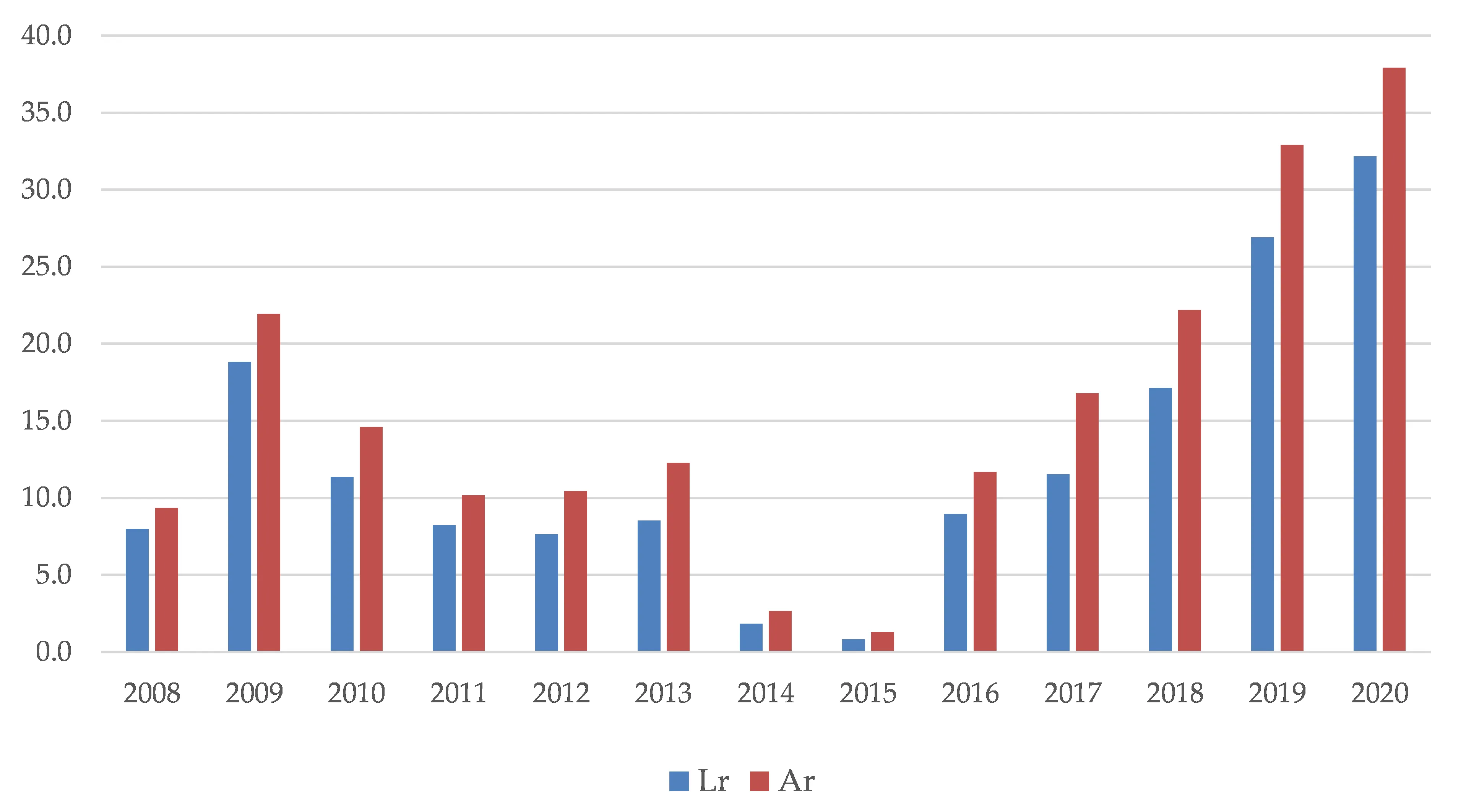 3.2. Land Consumption in the Metropolitan Area of Rome