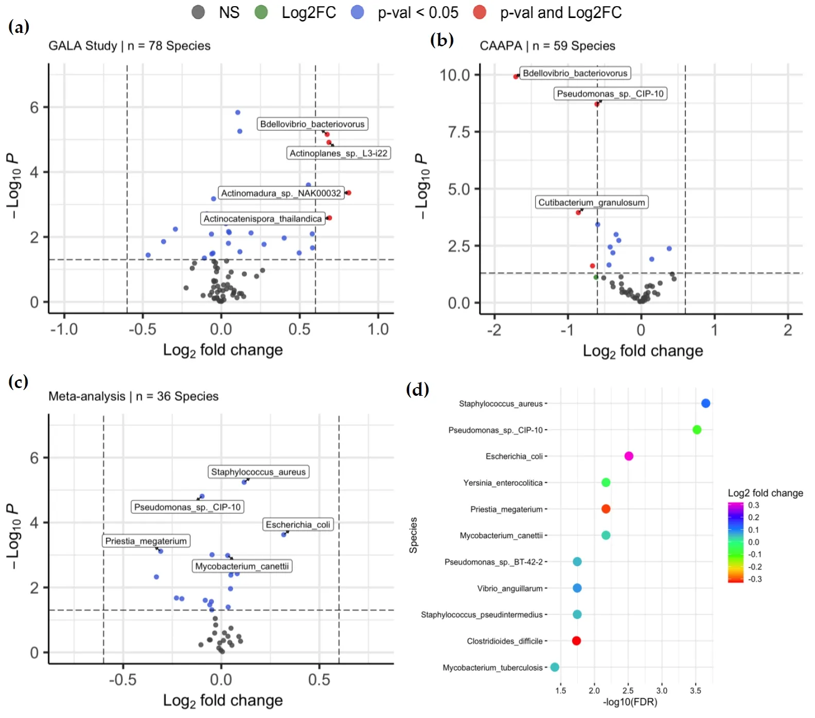 30], differential abundance analysis (DAA) was first conducted separately on each independent dataset to identify taxa associated with asthma. We controlled for age and sex as covariates in the differential abundance analyses of both GALA II and CAAPA study datasets. Differentially abundant taxa (DAT) were defined as microbial taxa with Benjamini & Hochberg adjusted