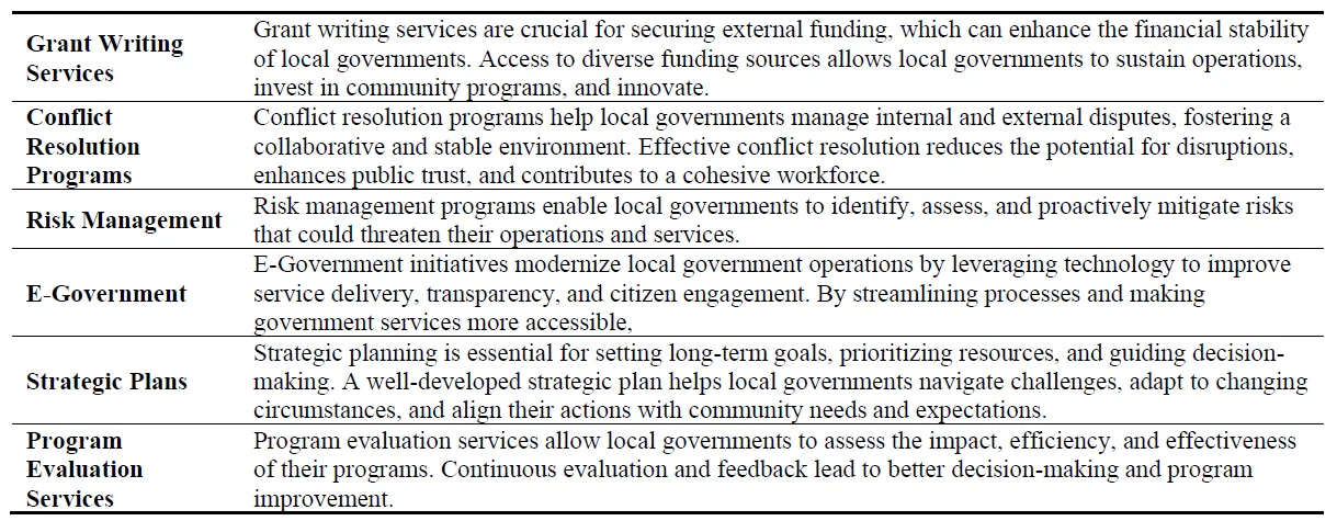24]. One of the primary goals of the program is to equip local government officials, community leaders, and other stakeholders with the skills and knowledge necessary to navigate the complexities of modern governance. This includes training in areas such as strategic planning, financial management, grant writing, and community engagement [