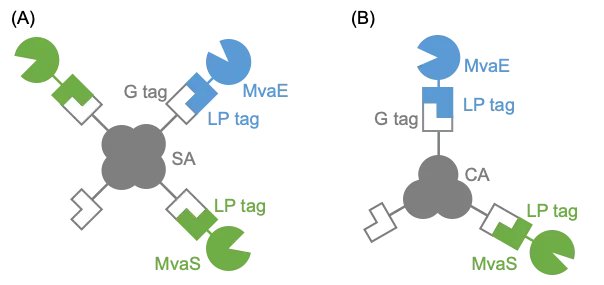 E. coli but also enhance the overall efficiency of the mevalonate biosynthesis pathway. In this study, we investigated the formation of metabolic enzyme complexes by immobilizing MvaE and MvaS on scaffold proteins via SrtA-mediated ligation to enhance mevalonate production in
