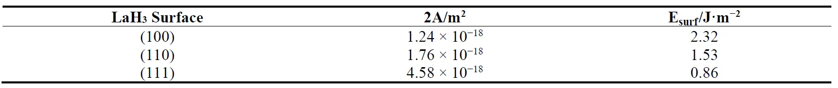 3’s three low exponential surfaces. Obviously, the surface energy of LaH