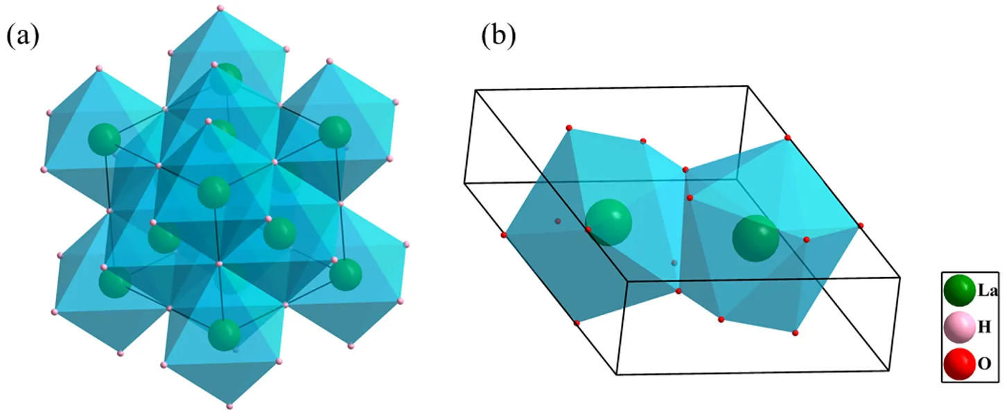 3, formed from LaH₃ upon exposure to air.The crystal structure model of La(OH)