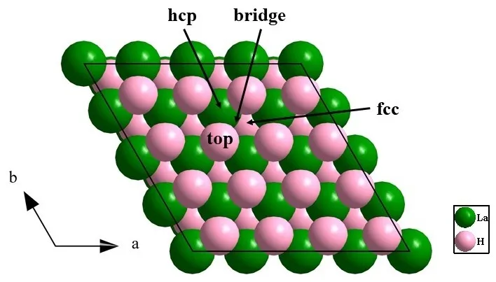 In the equation, $$\mathrm{E}_{\mathrm{total}}$$ is the total energy of the adsorption system, $$\mathrm{E}_{\mathrm{surface}}$$ is the total energy of LaH