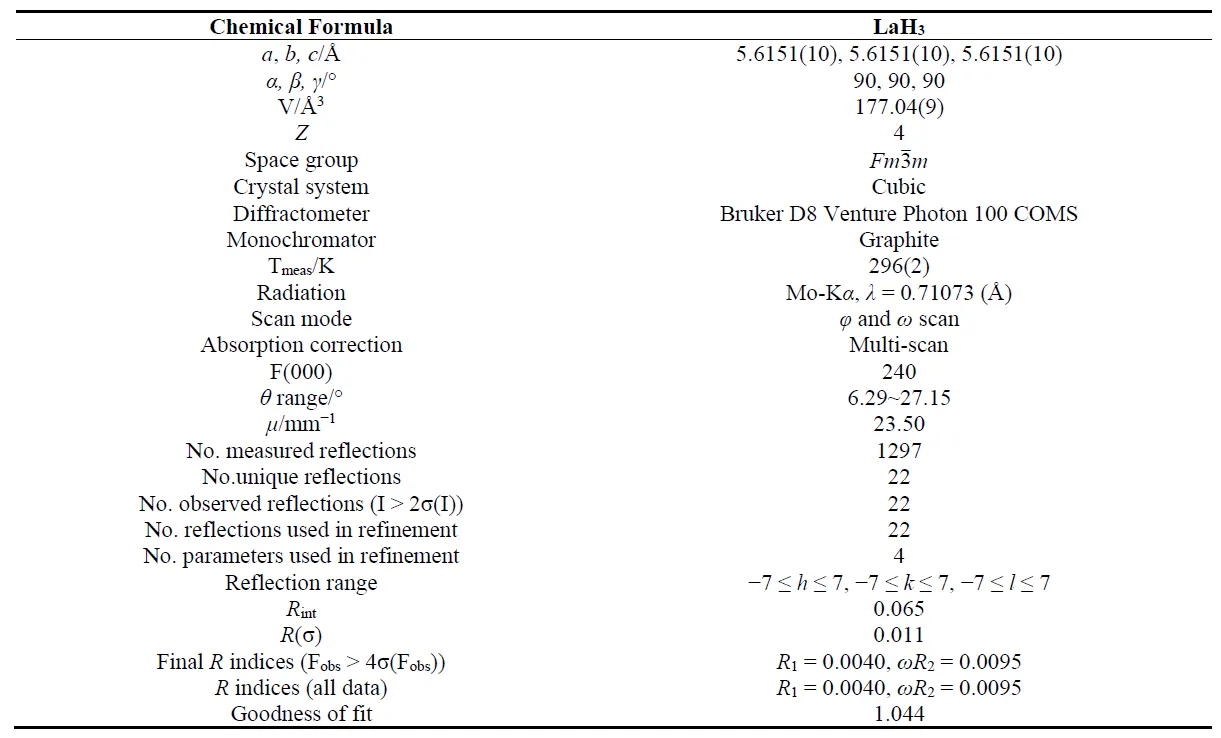 γ = 90°. The detailed diffraction information during collection and the structural refinement parameters of the LaH