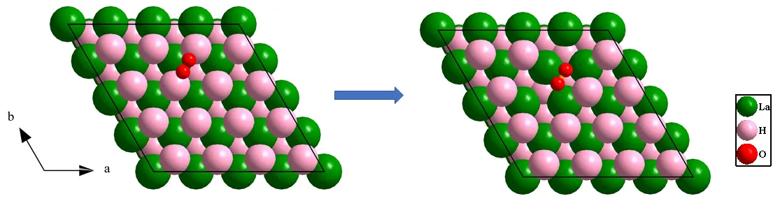 After the reaction route 1 has been confirmed, first-principles calculations have been utilized to explore the adoption process of oxygen at LaH
