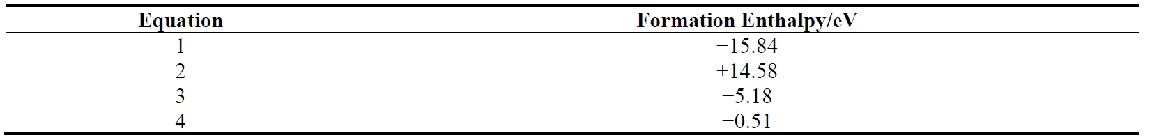 . Formation enthalpy of three possible reaction routes.