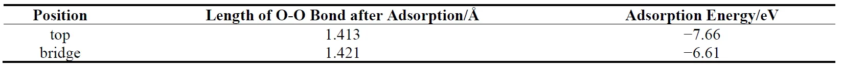 . Oxygen bond length and adsorption energy after adsorption at each position on the (111) surface.
