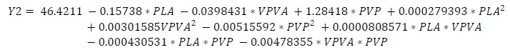 7]. The mixed factorial design was used to develop mathematical models that correlate encapsulation efficiency and cumulative drug release at 12 h with the levels of various formulation factors. The study used two primary biodegradable polymers: polylactic acid (PLA) and polyvinylpyrrolidone (PVP K30). PLA is a biodegradable polyester with excellent chemical and physical properties, suitable for drug delivery systems. The concentrations of poly(lactic acid) (PLA) were evaluated within the range of 100 mg to 300 mg. The addition of PLA concentrations enhanced encapsulation efficiency by facilitating the formation of a more compact polymer network. However, an excessive amount of PLA may hinder drug release, as the dense matrix restricts the diffusion of the drug into the surrounding medium.