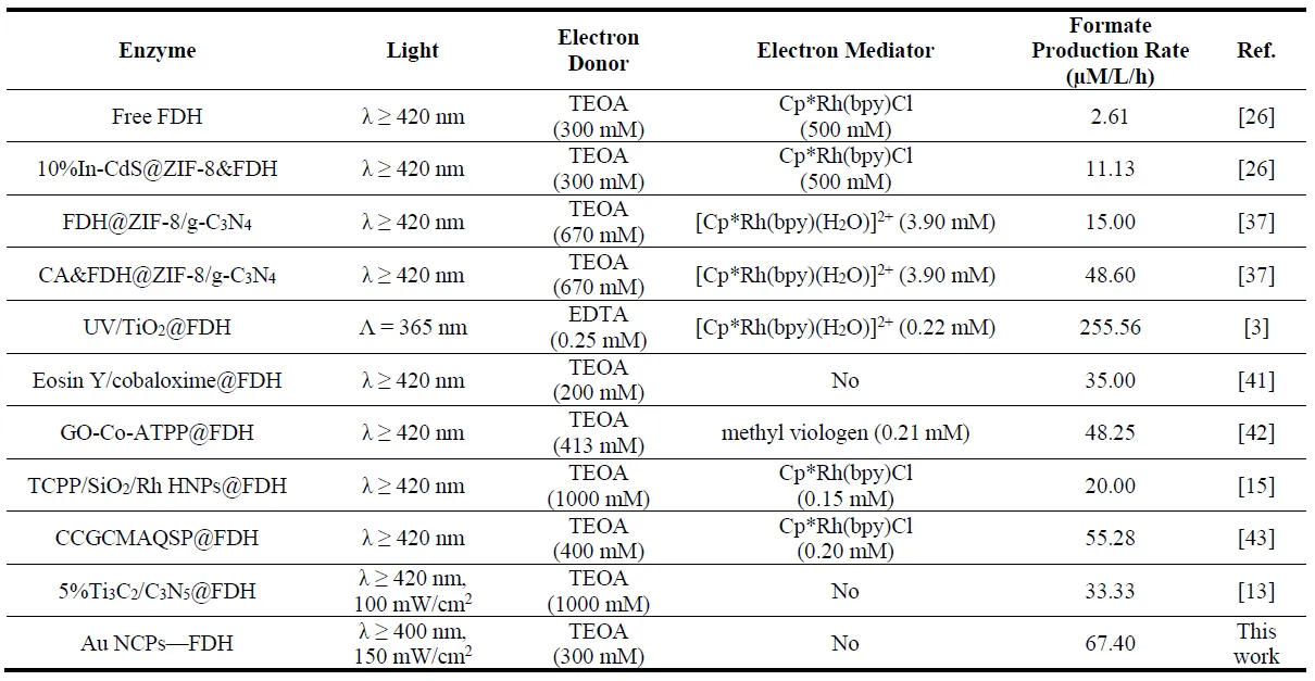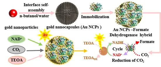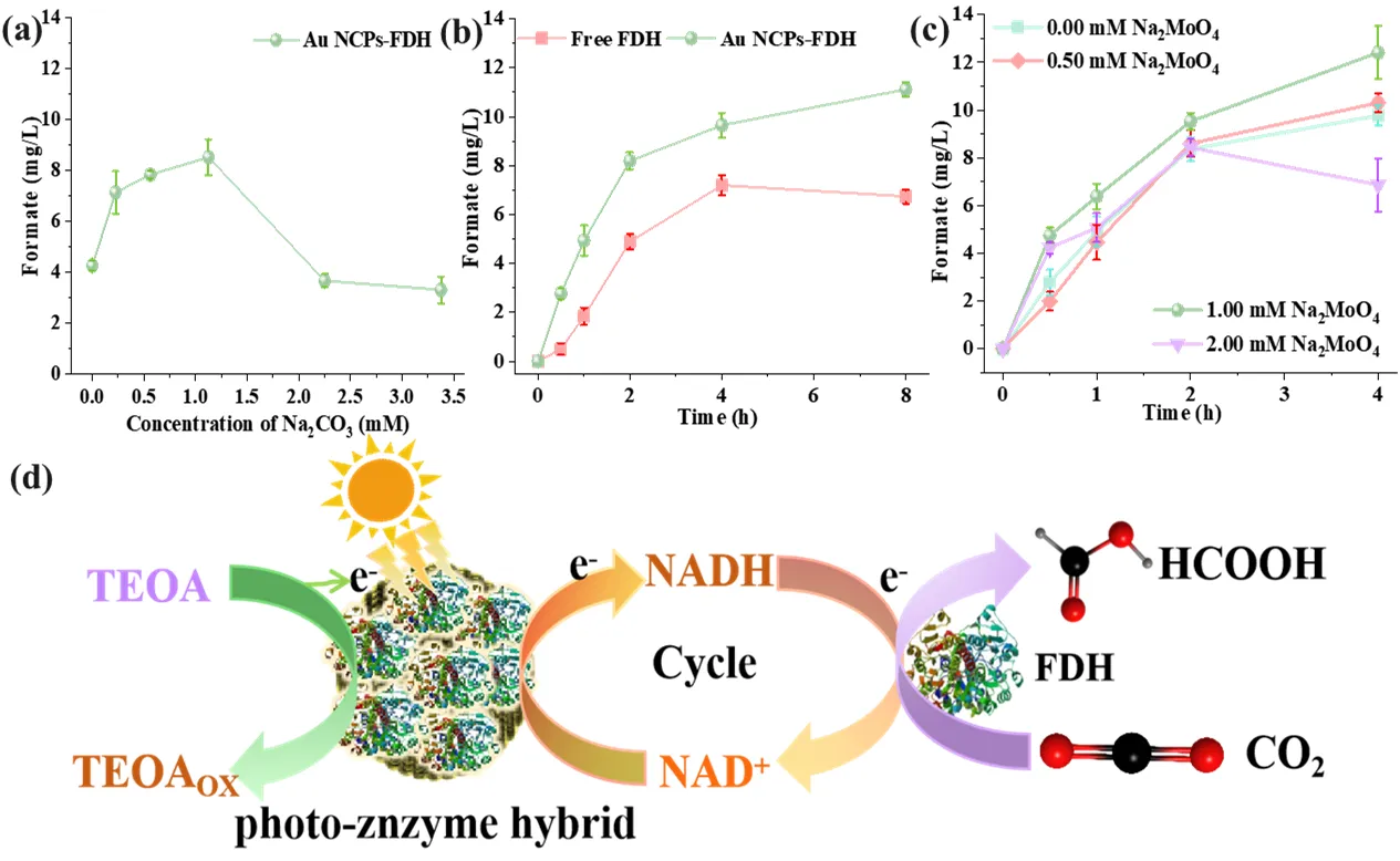 2 reduction to formate using the Au NCPs-FDH hybrid system, providing a solid foundation for developing photo-enzyme coupling hybrid systems and advancing light-driven enzyme catalysis for efficient carbon fixation.