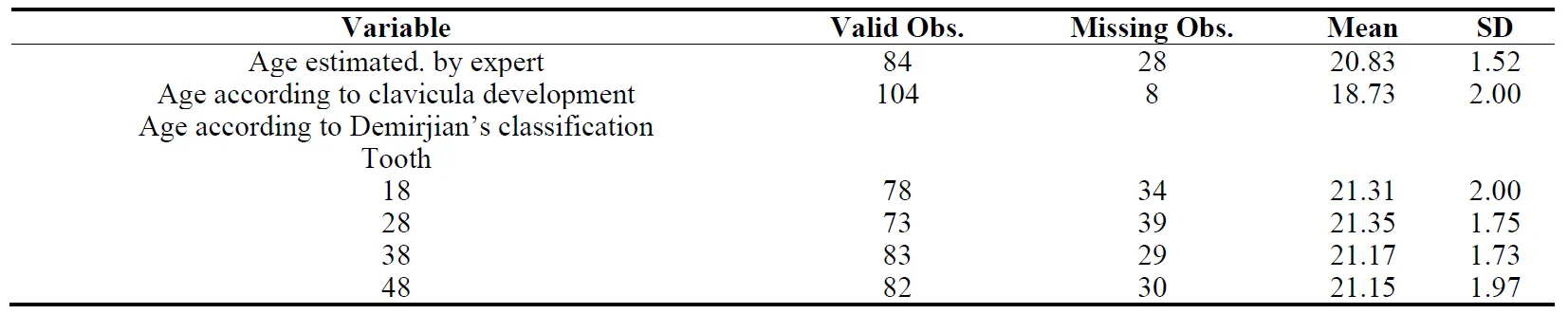 27]. This study aims to investigate the interaction between dental age diagnostics and clavicle analysis and their combined influence on the overall forensic expert’s opinion. Even though Demirjian’s staging method is implemented frequently in the literature/forensic practice, it is still unclear how much this method agrees with other methods, such as the clavicula. Therefore, the study aimed to determine the reliability rate by comparing dental age estimation and the clavicula based on the following hypothesis: