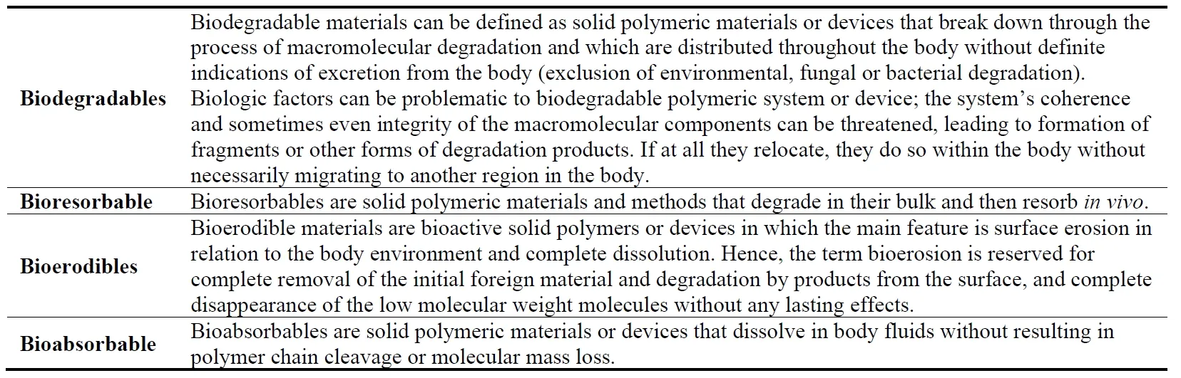177] for some biomedical applications. Nevertheless, this limitation is being harnessed by current research with efforts to lower production costs, enhance material properties, and extend applications so that PBS can compete as a sustainable alternative to conventional plastics in the future. Overall the the technical definitions for biodegarability can be shown as in and the applications of biodegradable polymers can sumerize as shown in .