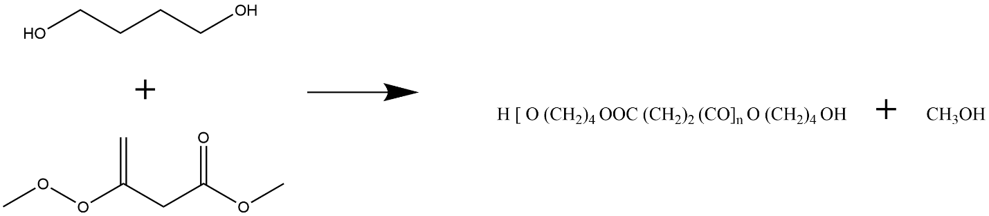. Transesterification of dimethyl succinate and butanediol.