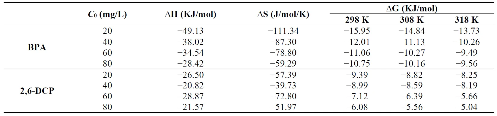 . Thermodynamic parameters of BPA and 2,6-DCP adsorption on C-SiO2/MPG.