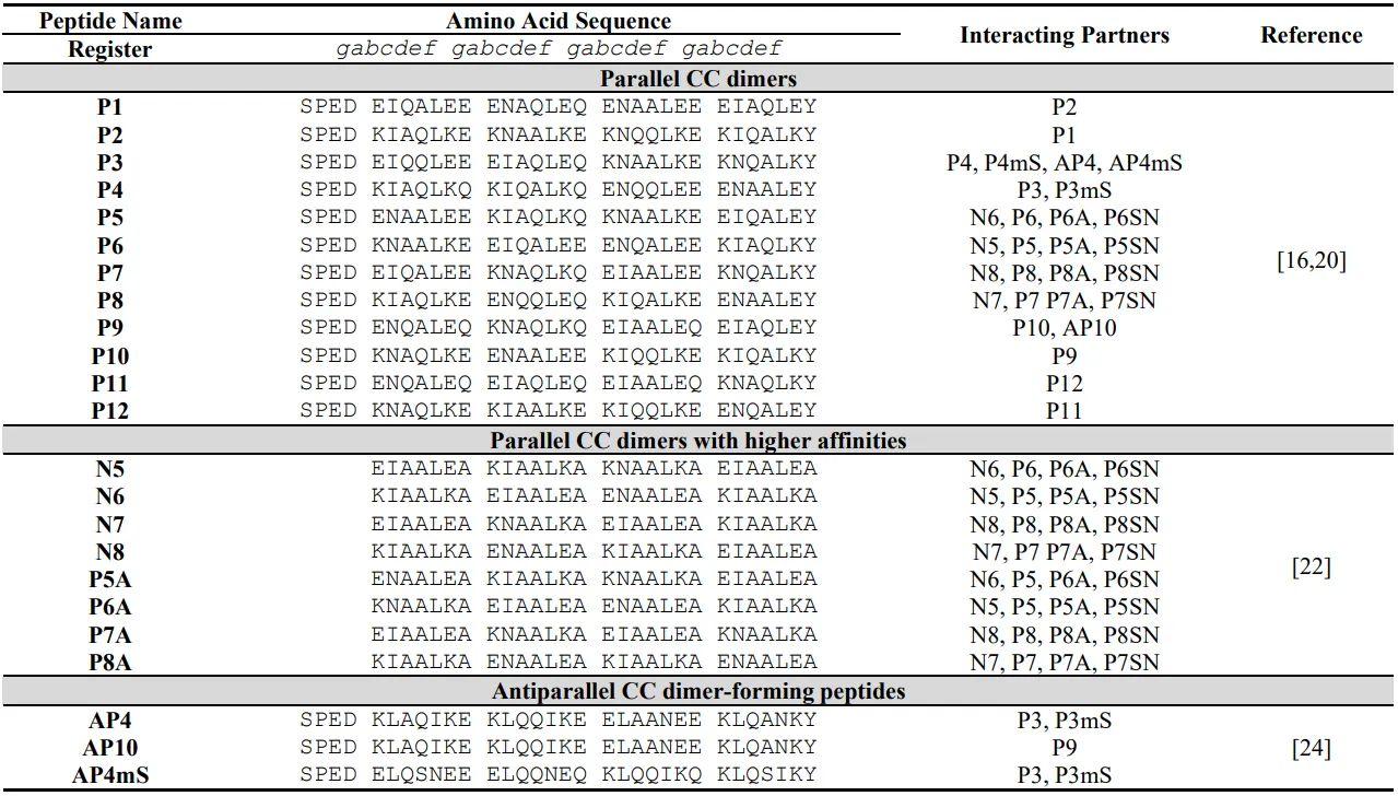 16]. Amino acid sequence variations within a coiled coil pair enable the generation of a large number of designs [