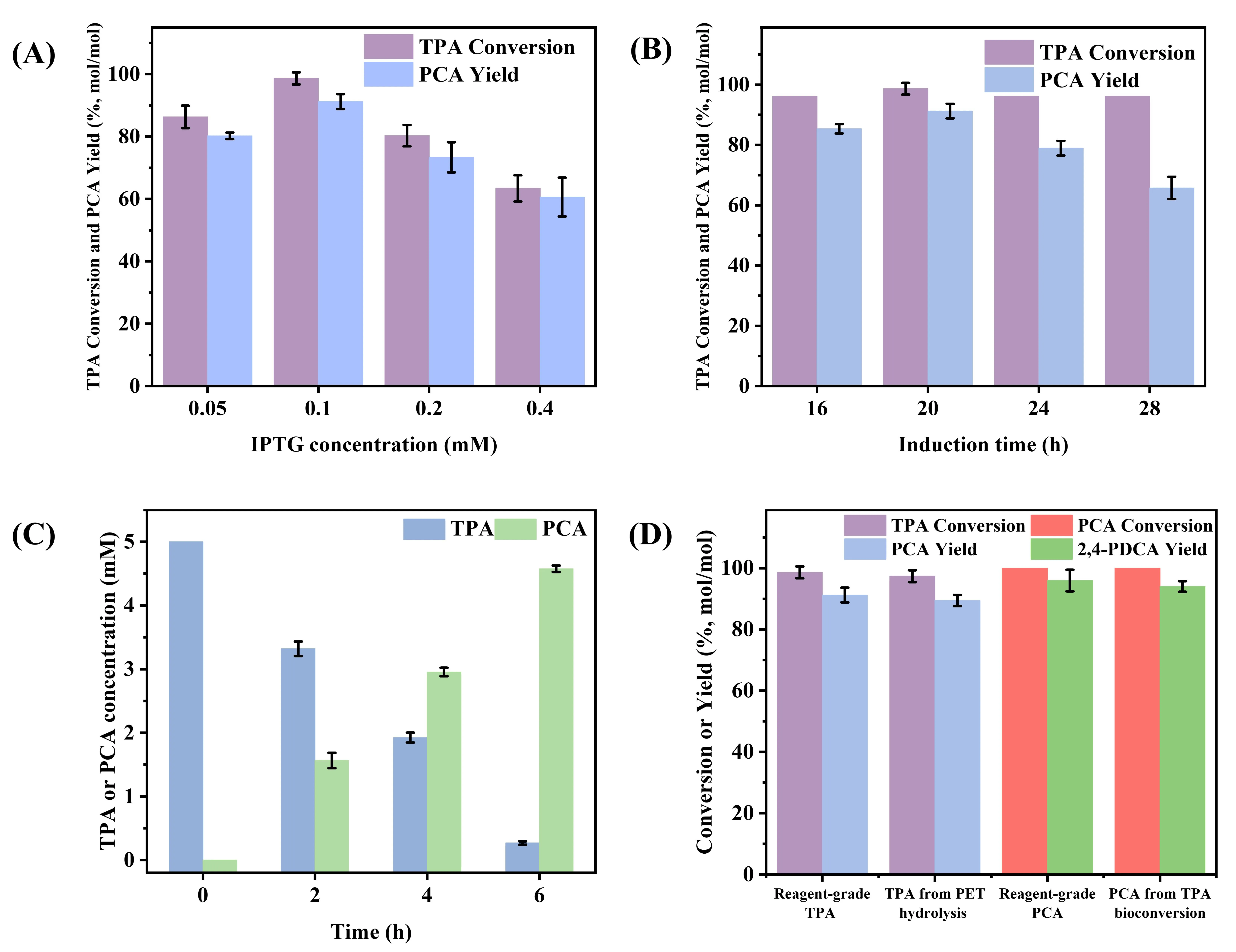 Whole-cell bioconversion of TPA to PCA was conducted using engineered