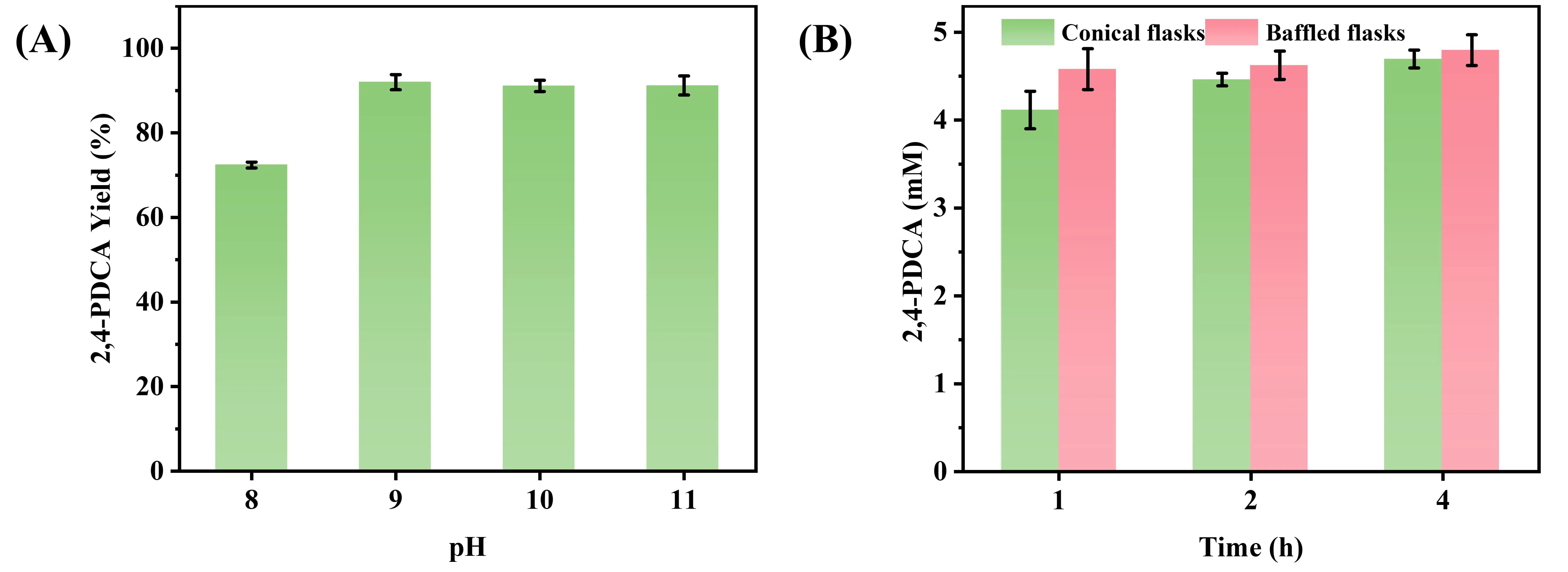 Whole-cell conversion of PCA to 2,4-PDCA was performed using engineered