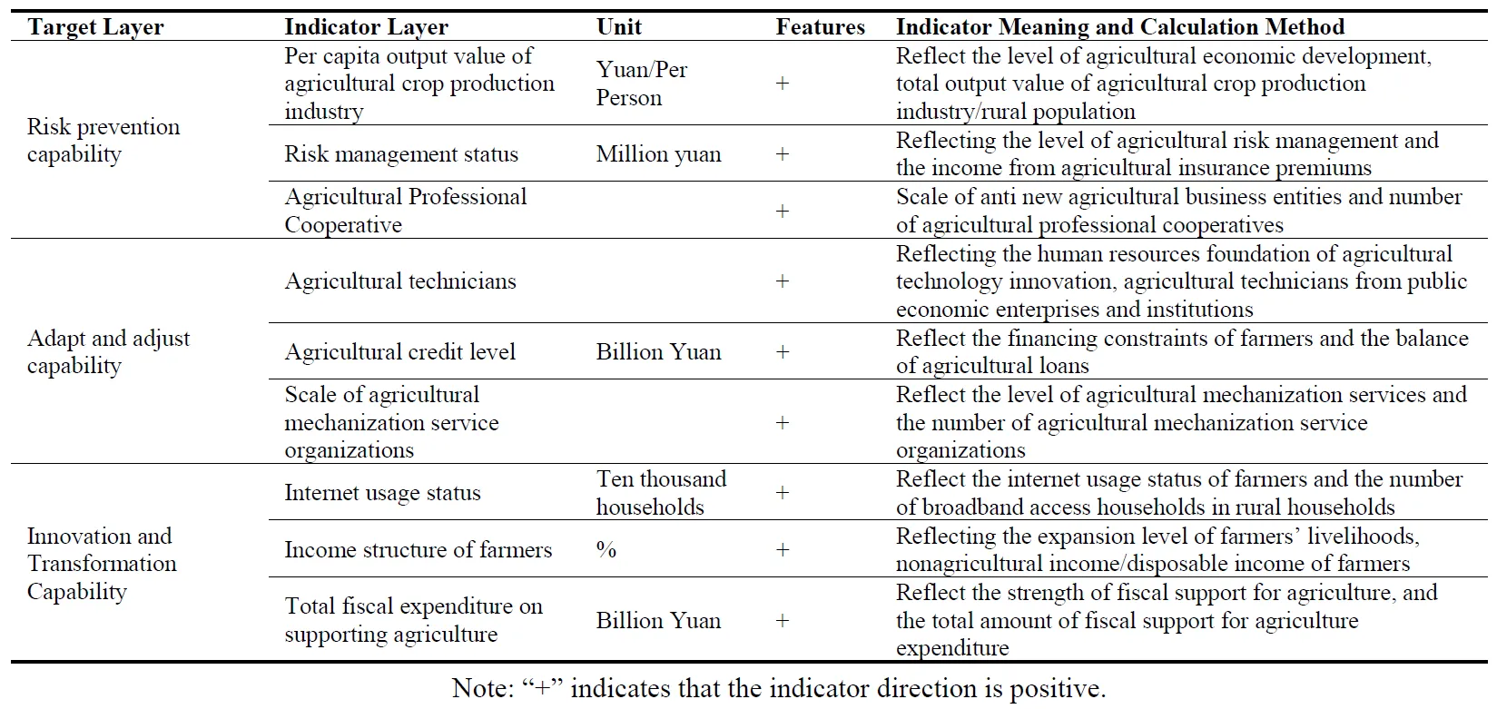 Firstly, the risk prevention capability of the agricultural crop production industry refers to the ability of the agricultural crop production industry system to anticipate the existence of risk factors before risk shocks and environmental fluctuations occur. This involves eliminating and controlling potential risk factors to either prevent risks from occurring or reduce potential losses.After being affected by shocks and fluctuations, the loss can be controlled within an acceptable range and the stable operating state of the system can be restored as soon as possible. Secondly, the adaptability and adjustment capacity of the agricultural crop production industry refers to the ability to predict risk trends during risk events accurately. At the same time, it involves mobilizing necessary resources quickly to respond to risks, adjusting the system’s operations to control the risk’s development and preventing the spread of losses. This helps avoid secondary crises and minimize the losses caused by risk shocks and environmental fluctuations. Finally, the innovation and transformation ability of the agricultural crop production industry refers to making correct judgments about the causes and rational control plans after risks occur. Adjust the organizational structure and risk prevention system in response to changes in risk and environment, enhance risk prevention capabilities, and enable the system to achieve balanced and stable operation at a higher level.