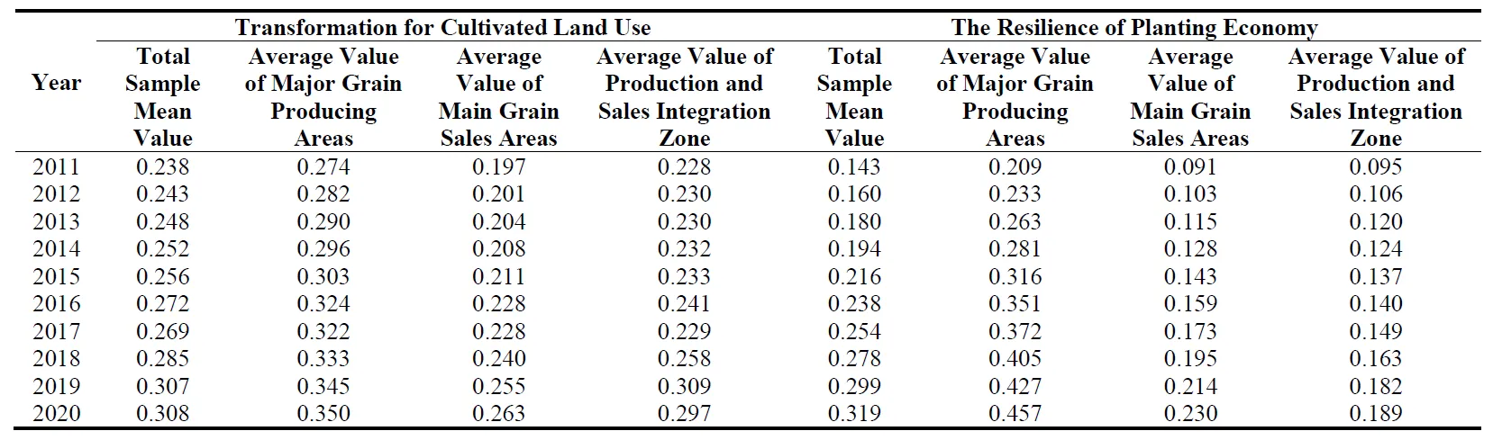. Trends in the transformation for cultivated land use and resilience of planting economy in China from 2011 to 2020.
