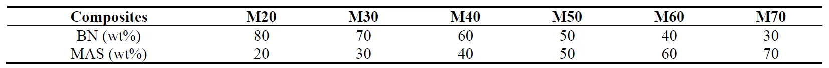 18. provides the detailed compositions of the BN-MAS ceramic composite specimens investigated in this study.