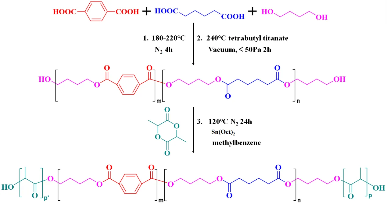 Poly(butylene adipate-co-terephthalate) (PBAT) is one of the most promising and popular aliphatic-aromatic co-polyester. It can be produced by a polycondensation reaction of terephthalic acid (TPA), butanediol (BBO), and adipic acid (AA). PBAT has good biodegradability due to the aliphatic unit and excellent mechanical properties with flexibility similar to low-density PE(LDPE) because of the aromatic unit in the molecule chain, making PBAT a very promising biodegradable material for a wide range of potential applications [