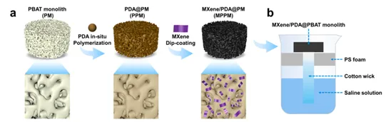 Zhang RQ, Han WJ, Jiang HJ, Wang XF, Wang B, Liu CT, et al. PBAT/MXene monolithic solar vapor generator with high efficiency on seawater evaporation and swage purification.