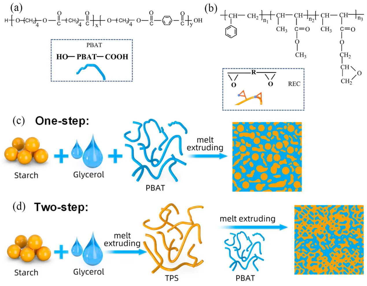 Bai J, Pei HJ, Zhou XP, Xie XL. Reactive compatibilization and properties of low-cost and high-performance PBAT/thermoplastic starch blends.