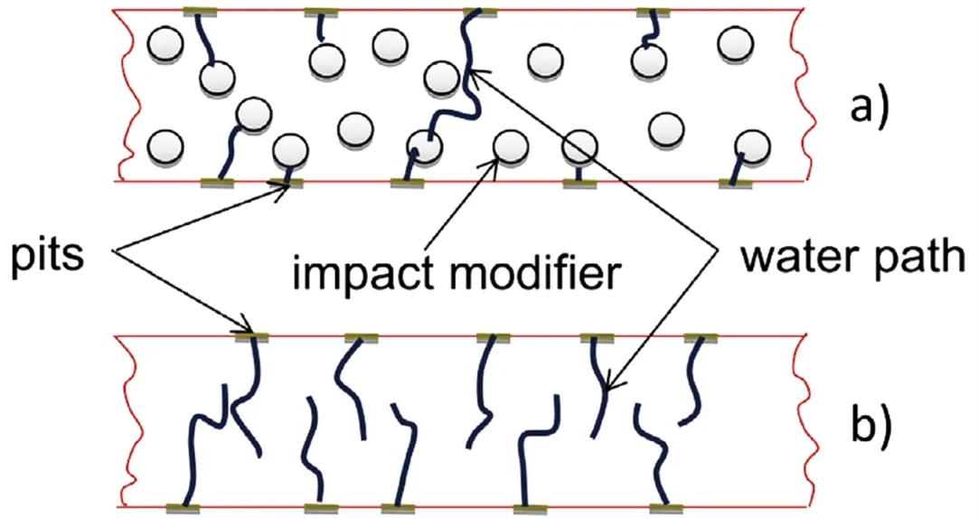 2 impact strength lead PLA to be a very brittle material with poor toughness, whereas the lower tensile modulus and flexural strength lead PBAT very easy to deform. The Heat Distortion Temperature (HDT) reflects the resistance of plastic materials to heat in the short term, which is used as one of the benchmarks for “heat resistance”. The HDT of PLA and PBAT are both below 100 ℃, belonging to low heat resistant plastic.