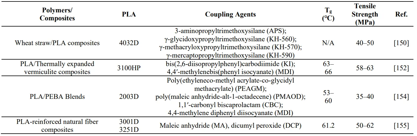 Polylactide or poly(lactic acid) (PLA) is a linear thermoplastic aliphatic polyester with good biocompatibility, high strength, non-toxicity, and compostability that makes it attractive as a material with potential usabilities, such as packaging, textiles, electronics, biomedical, construction and automotive [