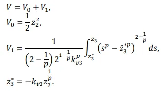 p2 < 2 and both $$p_{1}$$ and $$p_{2}$$ are positive odd integers satisfying $$p_1>p_2$$, and $$k_{\omega2},k_{\nu2},k_{\nu3}$$ are appropriate positive constants. Without any ambiguity, we use $$\left(\cdot\right)^p$$ for simplicity instead of $$\left|\cdot\right|^p\operatorname{sign}(\cdot)$$, where $$p=p_1/p_2$$.