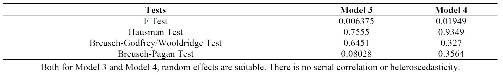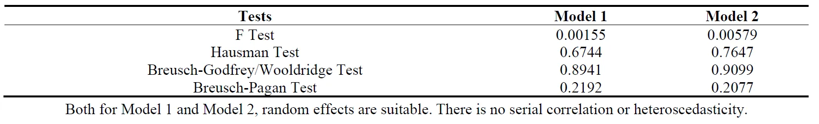 As provided in Table A1, researchers often use panel data regression to show how a dependent variable changes over time for multiple subjects. The panel data regression models to be used in this study are given below.