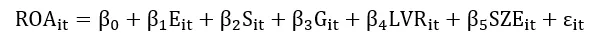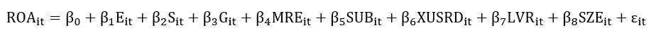 28]. ROA will be used as the dependent variable representing the profitability of the company i at year t. The calculation method for ROA is given below: