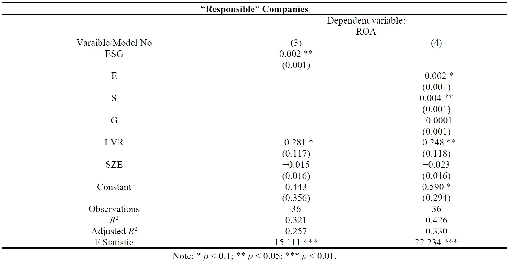 10] investigated ESG’s impact on corporate financial performance over a decade (2011–2020) using a sample of 3332 listed firms worldwide. They apply multiple regression and categorized regression to analyze 24,076 valid observations. Results reveal a significant positive correlation between ESG performance and corporate performance, particularly for large-scale companies. Additionally, the study finds that the positive influence of ESG on financial performance is more pronounced in high-risk scenarios.