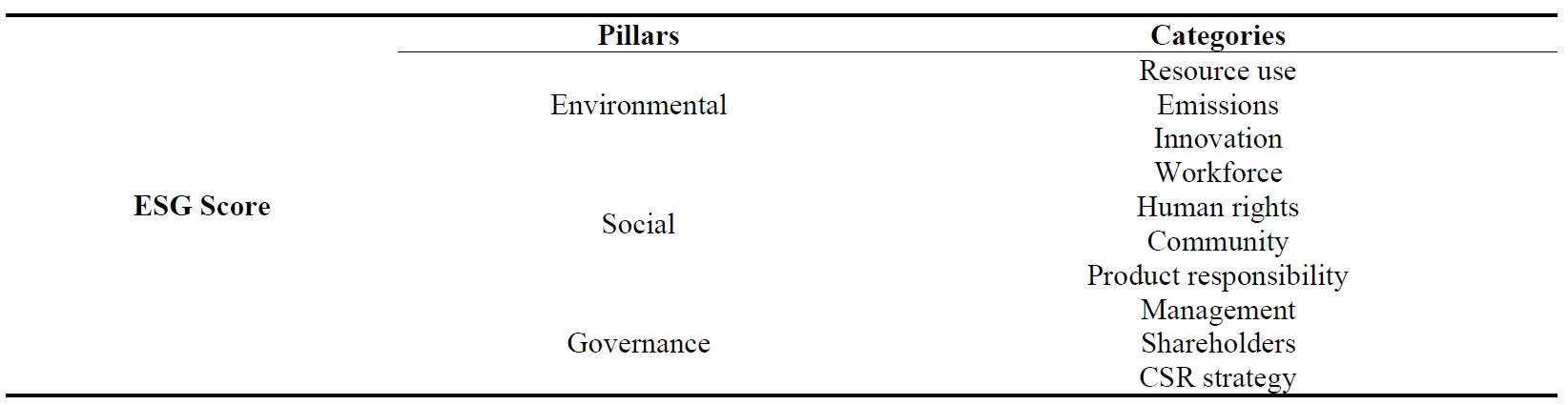 it is added as an independent variable, which represents the ESG score of company i at time t. In addition to the overall ESG score, the E, S, and G pillars are also included as independent variables in the models, as in [
