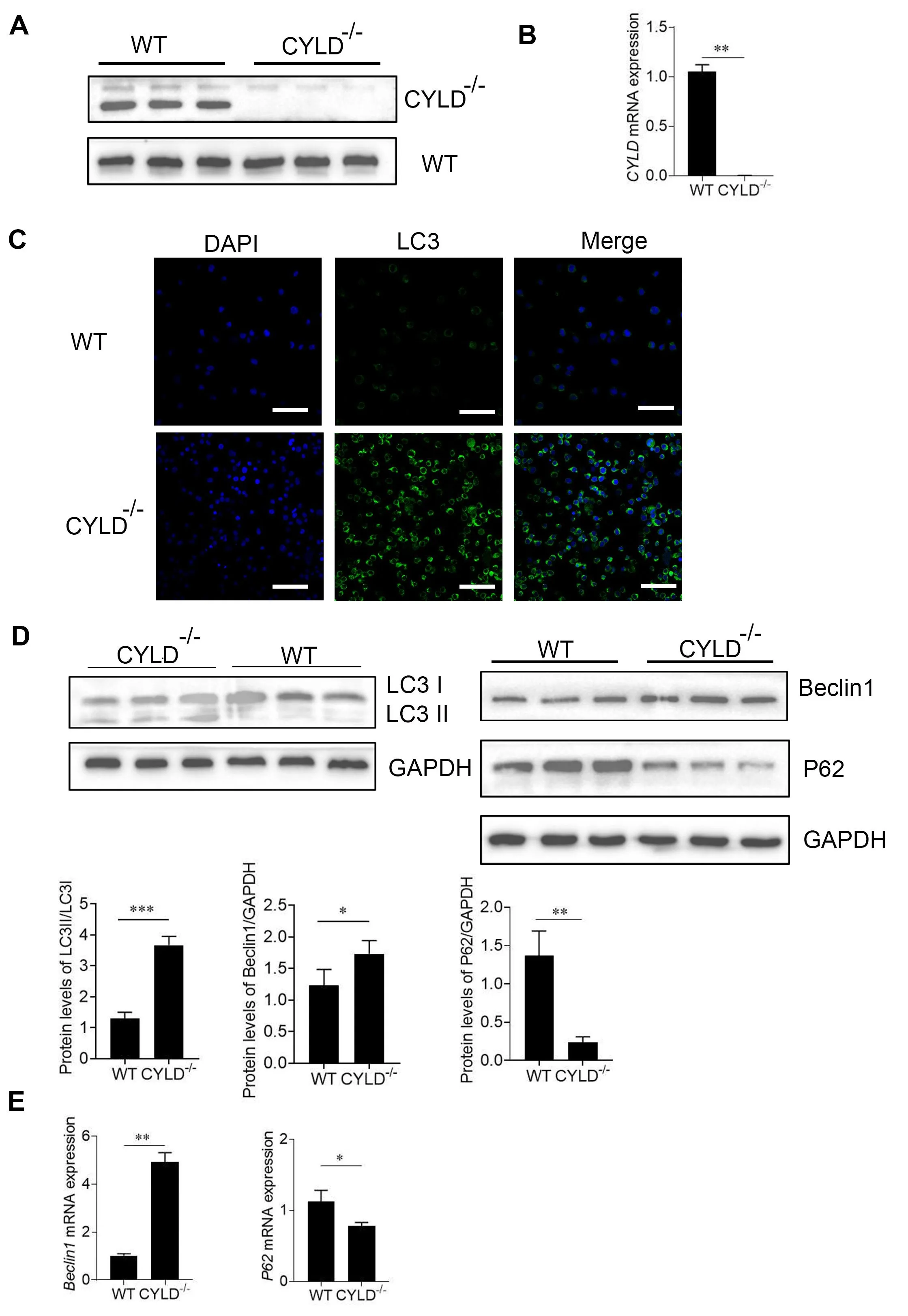 18]. Studies have shown that CYLD interacts directly with P62 and directly inactivates histone deacetylase(HDAC6), thereby controlling autophagy [