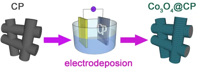 4 and carbon paper by electrodeposition for a rechargeable lithium-oxygen battery, aiming to overcome problems including large charge overpotential, low conductivity, side reactions, etc. The schematic diagram of the synthesized course of the Co
