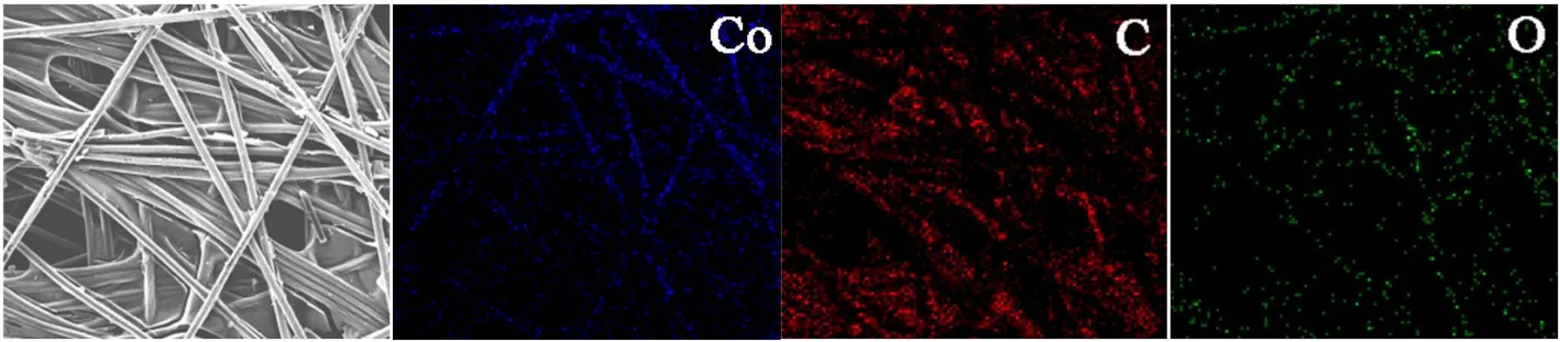 . EDS maps of the elements of Co, C, O in the Co3O4@CP material.
